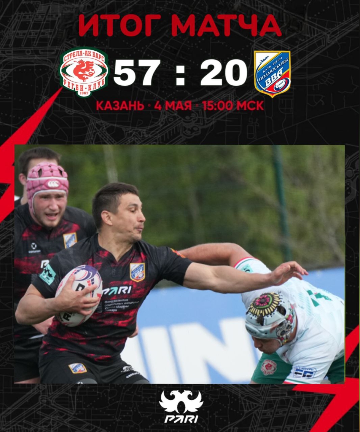 После длительного перерыва матч 10 тура PARI Чемпионата России по регби со «Стрелой-Ак Барс» закончился для «ВВА-Подмосковья» поражением.