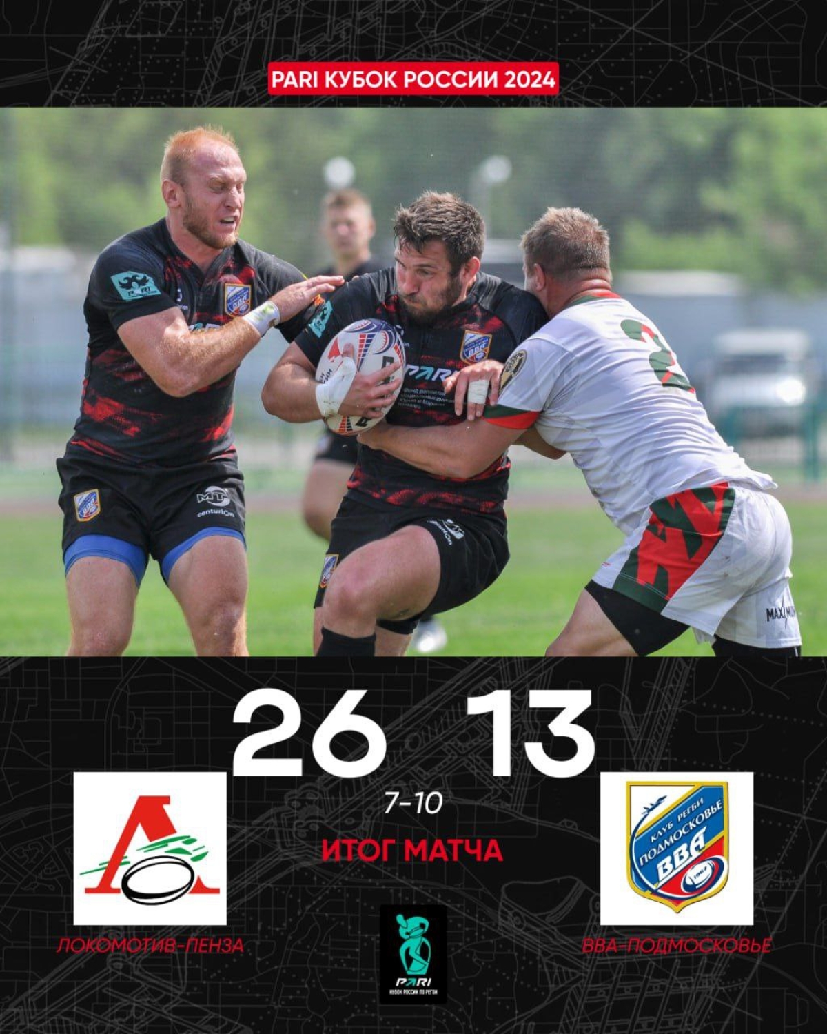 «ВВА-Подмосковье» уступает «Локомотиву-Пенза» в матче 1/4 финала Кубка России и выбывает из гонки за трофей. Надо отдать должное команде, что игра против действующего чемпиона России смотрелась на равных. И на перерыв «ВВА-Подмосковье» уходила, ведя в счёте 7:10. Но несколько допущенных ошибок привели к потере мяча и, соответственно, пропущенным попыткам.