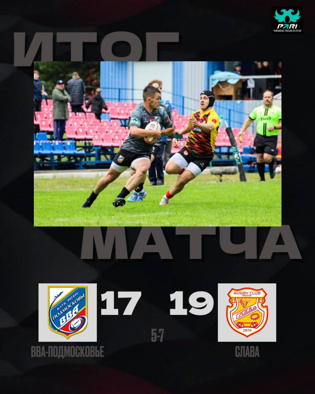 После перерыва ВВА усилила натиск: на 49-й минуте Евгений Кароннов занёс попытку, которую точно реализовал Илья Шаповалов (12:7). На 71-й минуте Михаил Бабаев после паса Сергея Мотова вывел команду вперёд (17:12), но реализация вновь не была точной.