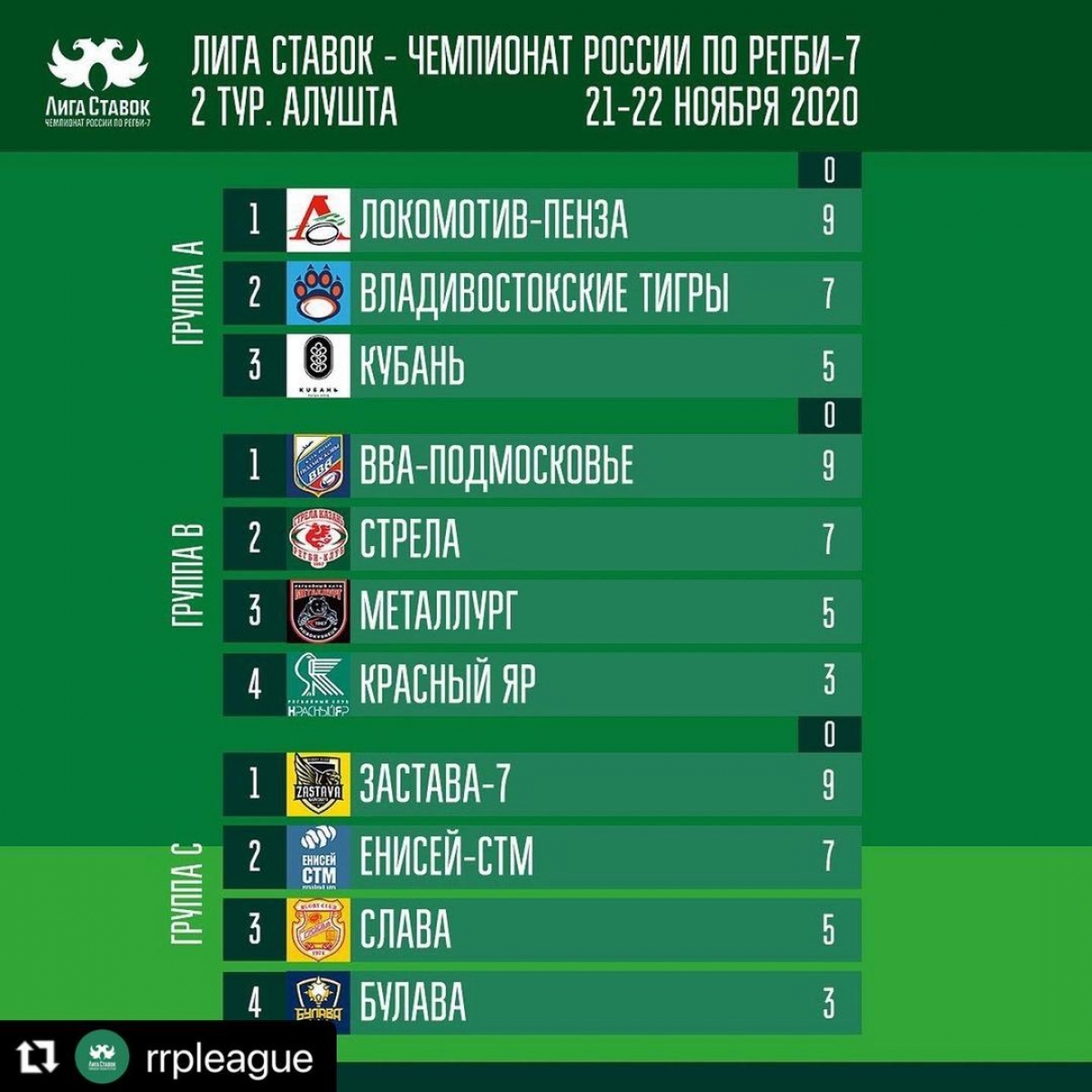 По итогам первого игрового дня команда "ВВА-Подмосковье" вышла на первую строку в группе В, победив Красный Яр 27:0, Металлург 38:0 и Стрелу 24:7.
