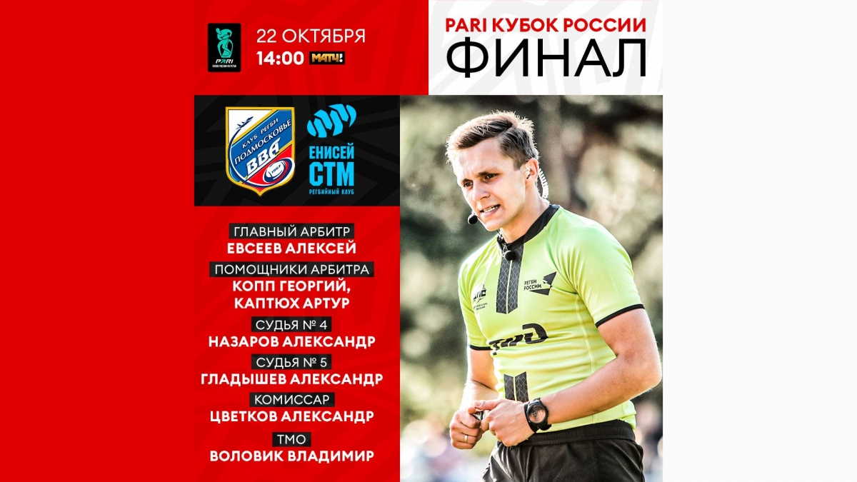 - 2022 год получился сложным как для спортсменов, так и для судей, - говорит спортивный директор Федерации регби России Сергей Марков. – Впервые за семь последних лет положительная динамика работы российских судей замедлилась, и некоторые опытные арбитры в текущем сезоне допускали несвойственные для себя ошибки, получая за работу в этих матчах низкие оценки. Финал PARI Кубка России по регби является венцом всего календарного года как для игроков и функционеров, так и для судейского корпуса. Поэтому назначение на финальный матч PARI Кубка России по регби – это своего рода награда за хорошо проведенную первую часть сезона 2022/23. Алексей Евсеев, получивший в этом сезоне рекордное для себя количество назначений на матчи PARI Чемпионата России по регби, за работу на которых имеет высокие оценки, по праву назначен на предстоящую встречу в качестве судьи в поле.