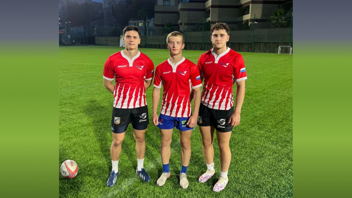 Ислам Шакиров, Александр Казаков и Илья Корнеев на тренировочных сборах в составе национальной команды России по регби-7.