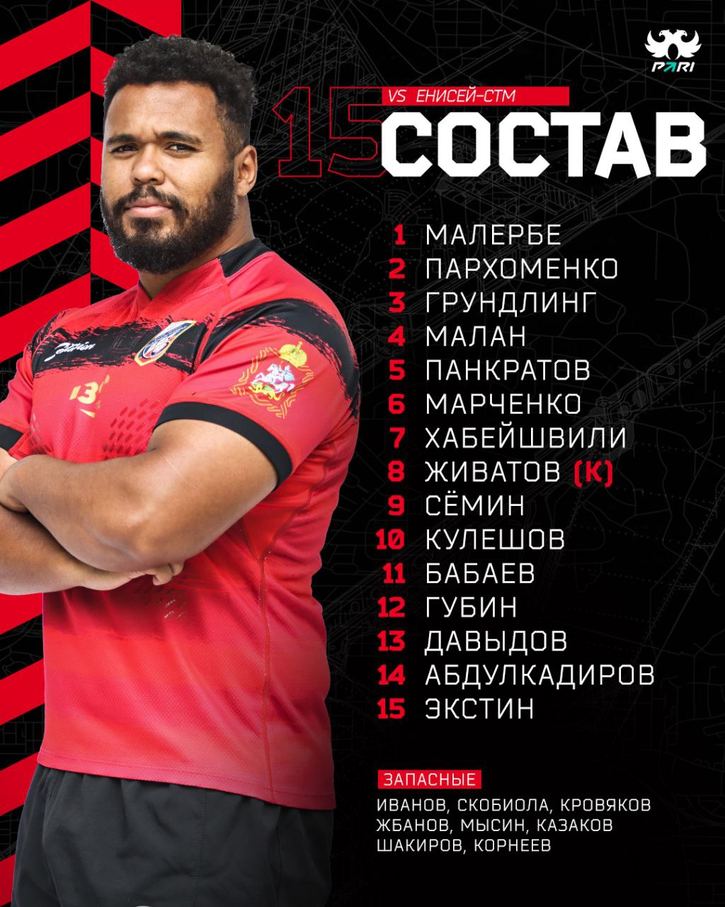 Публикуем состав команды «ВВА-Подмосковье» на матч против красноярского регбийного клуба «Енисей-СТМ», который пройдет завтра 04 июня 2023 года на домашнем стадионе в Монино ул. Алксниса, 42.